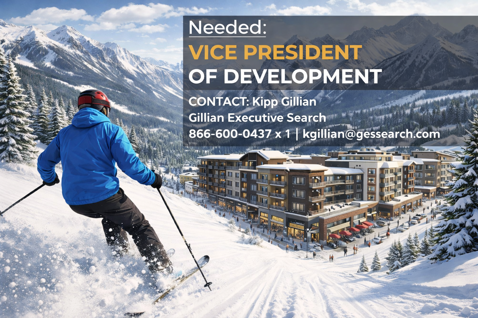 Gillian Executive Search is a leader in recruiting for resort development and construction in luxury ski markets in the United States. Call or email Kipp Gillian to learn more about this opportunity.